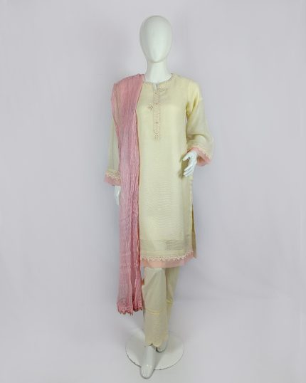 3 PIECES – Hand Embroidered Shirt with Trouser & Dupatta