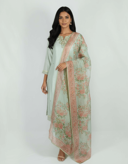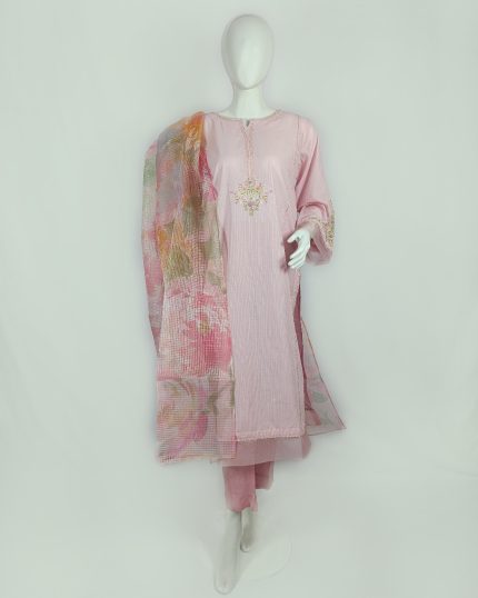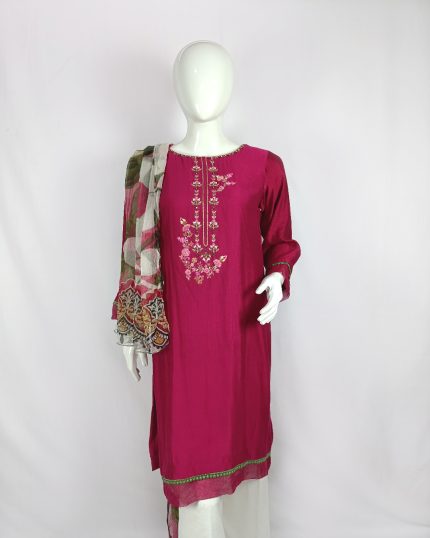 3 PIECES – Hand Embroidered Shirt with Trouser & Printed Dupatta