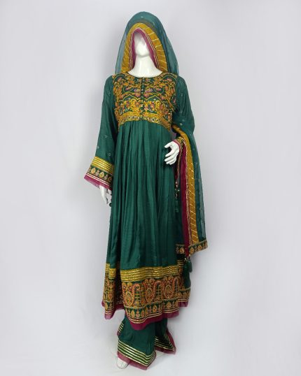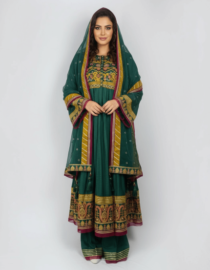 3 PIECES – Embroidered Chiffon Maxi Top with Hijra style bottom along with organza dupatta