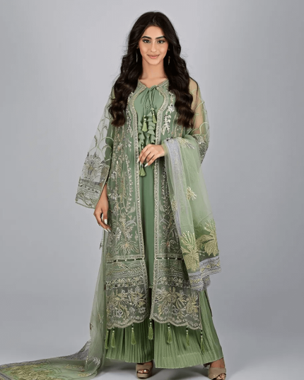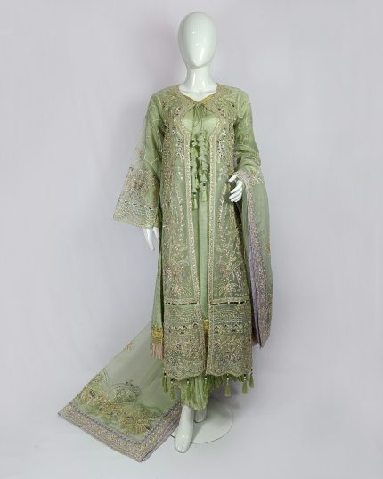 3 PIECES – Organza embroidered shirt with Flapper embroidered bottom & embroidered dupatta