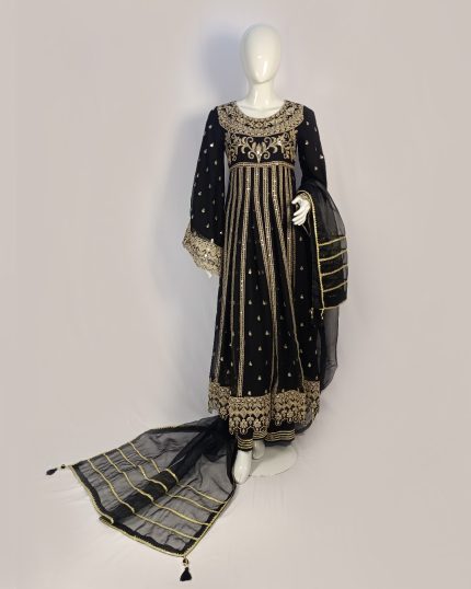 3 PIECES – Embroidered anarkali frok with trouser & chiffon embroidered dupatta