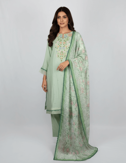 3 PIECES – Embroidered Shirt with Trouser & Printed Dupatta