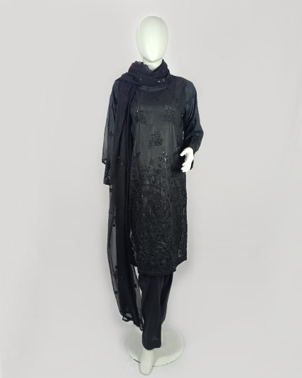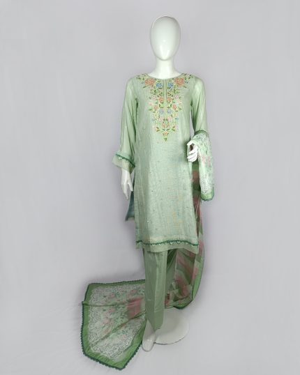 3 PIECES – Hand Emb shirt with trouser & Chiffon Emb dupatta