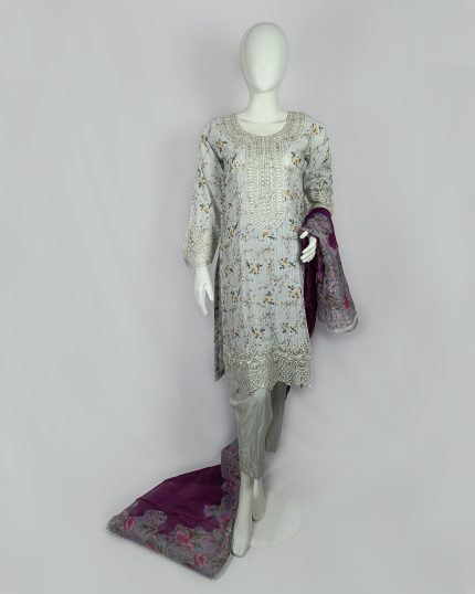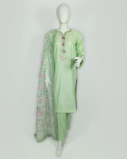 3 PIECES – Hand Embroidered Shirt with Trouser & Printed Dupatta