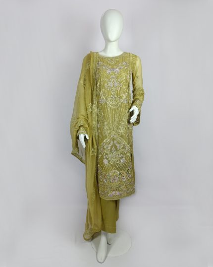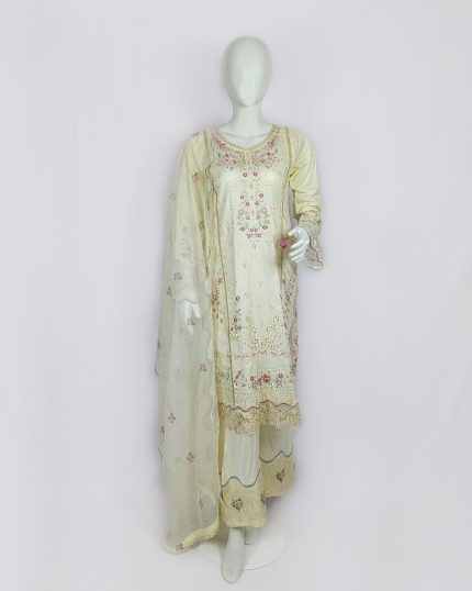 3 PIECES – Embroidered organza shirt with silk trouser & Embroidered organza dupatta