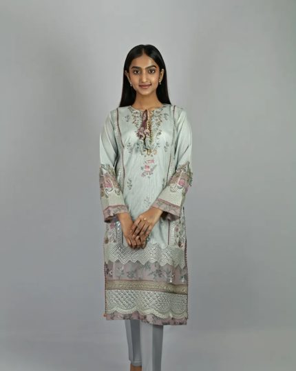 3 PIECES – Embnroidered shirt with trouser & printed munarch dupatta