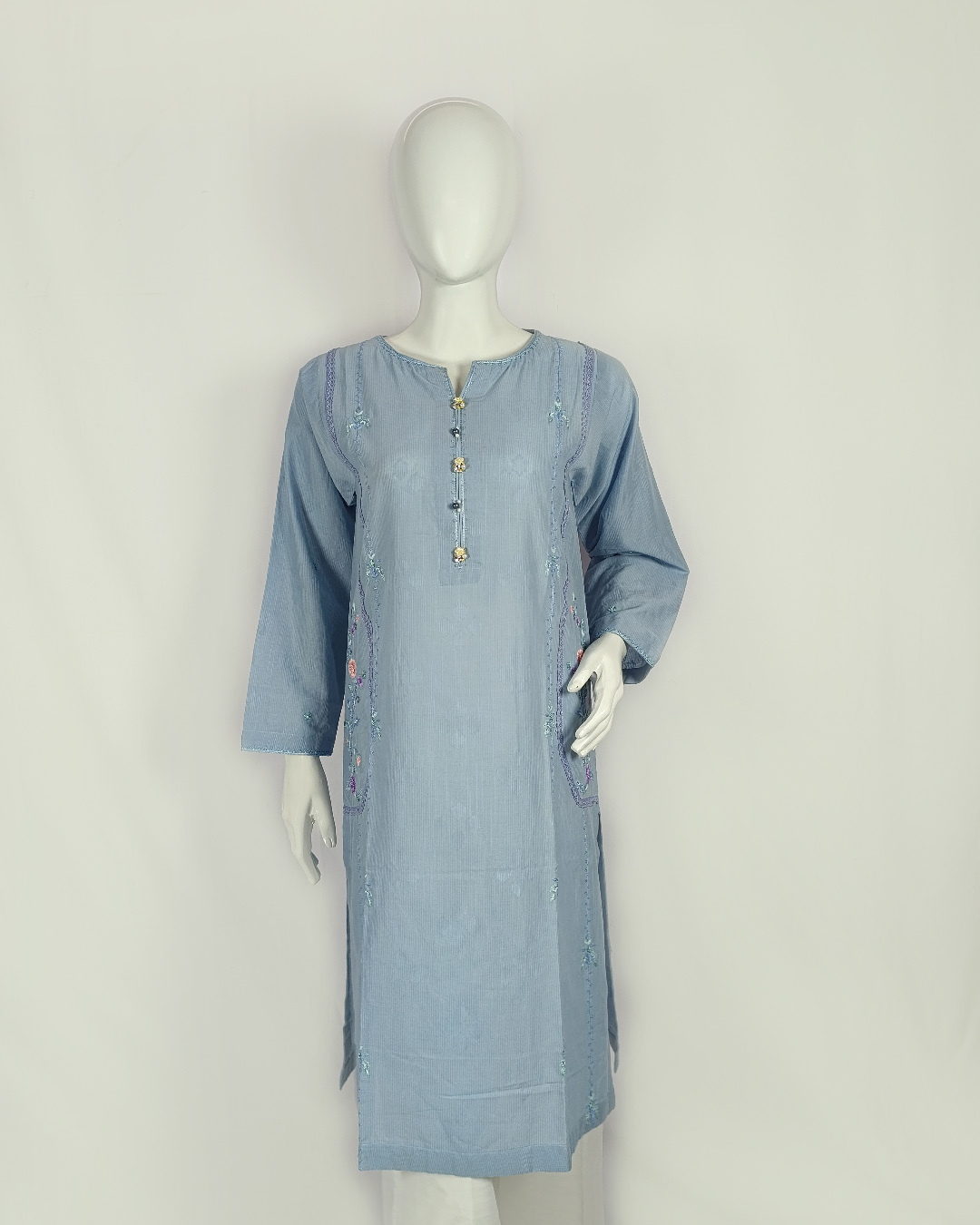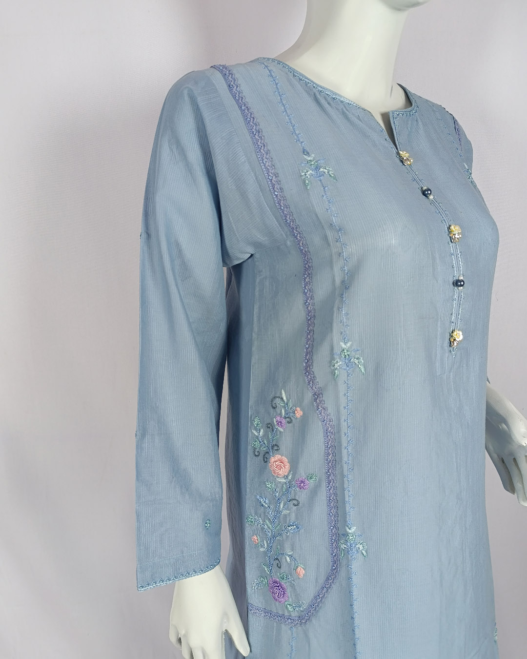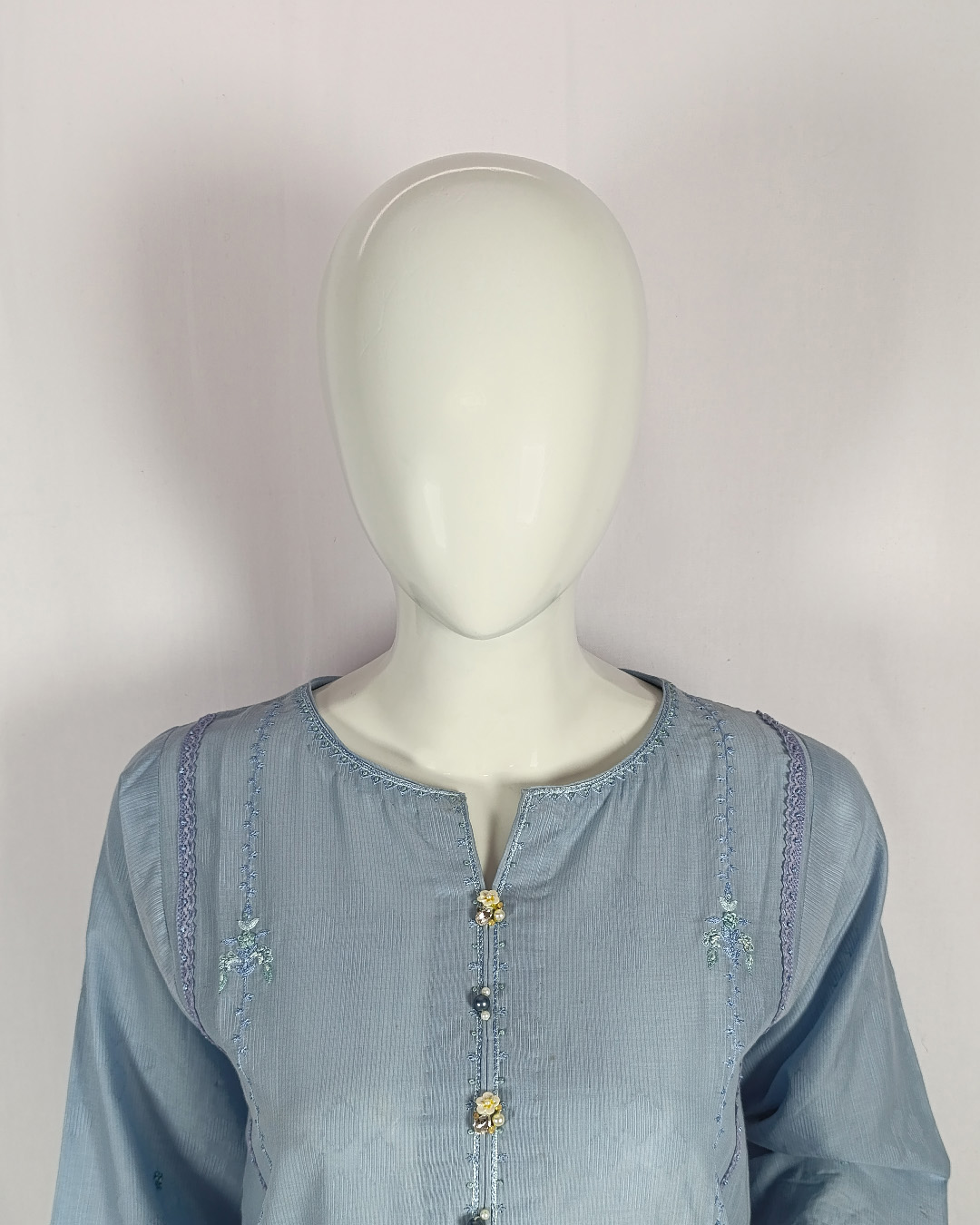 Bring a touch of understated elegance to your wardrobe with this hand-embroidered shirt. Made from premium self-fabric, it features delicate lace, pearl accents, and intricate hand embroidery — perfect for casual gatherings or semi-formal occasions.