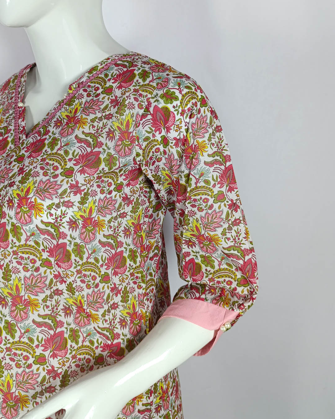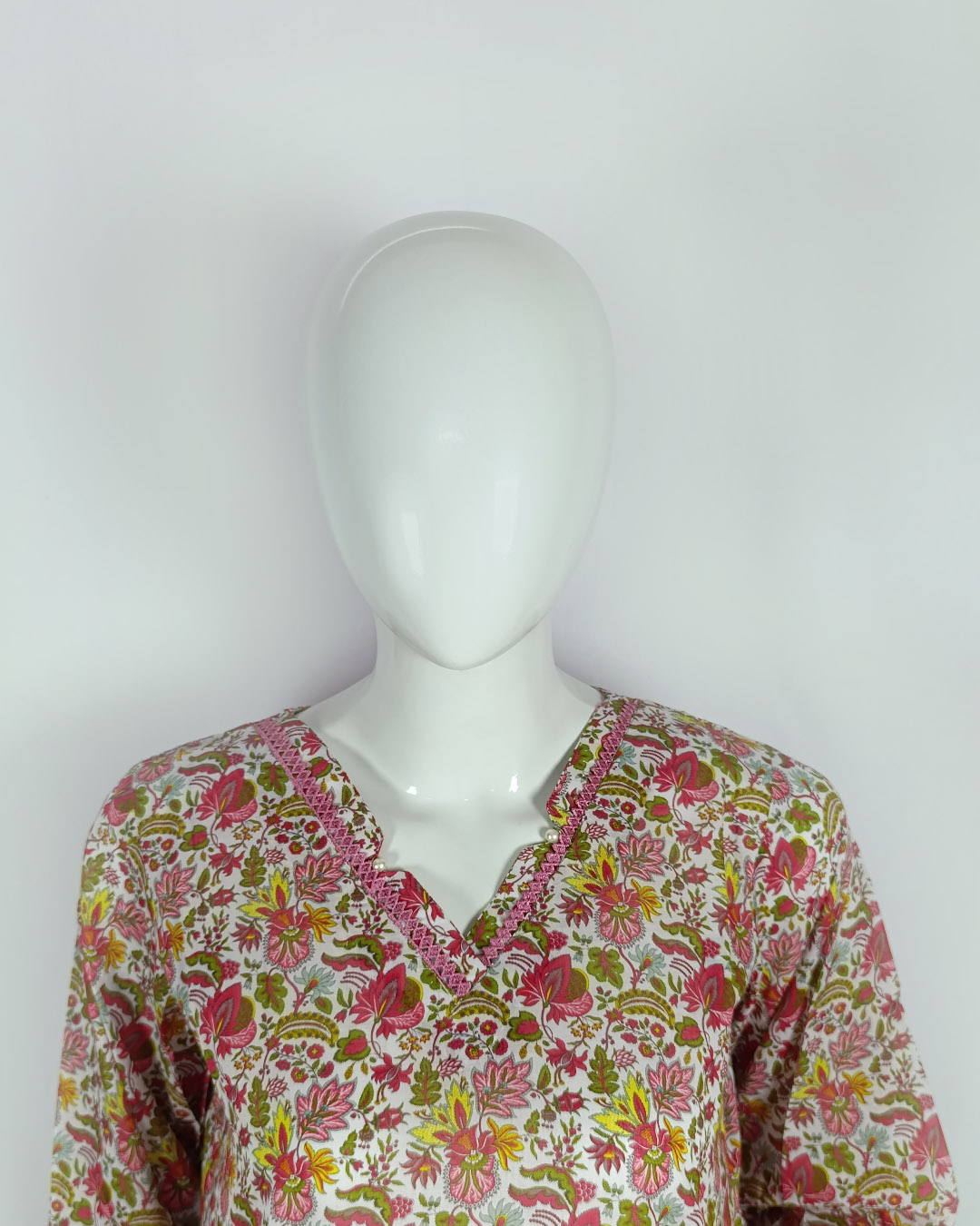 👚 Shirt: Printed lawn with lace & pearl detailing — effortless style with a feminine touch