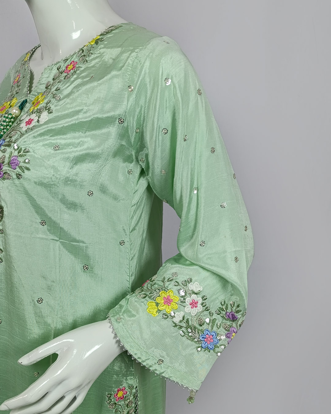 ✔ Embroidered Malai Shirt (Lace + Pearl Detailing)