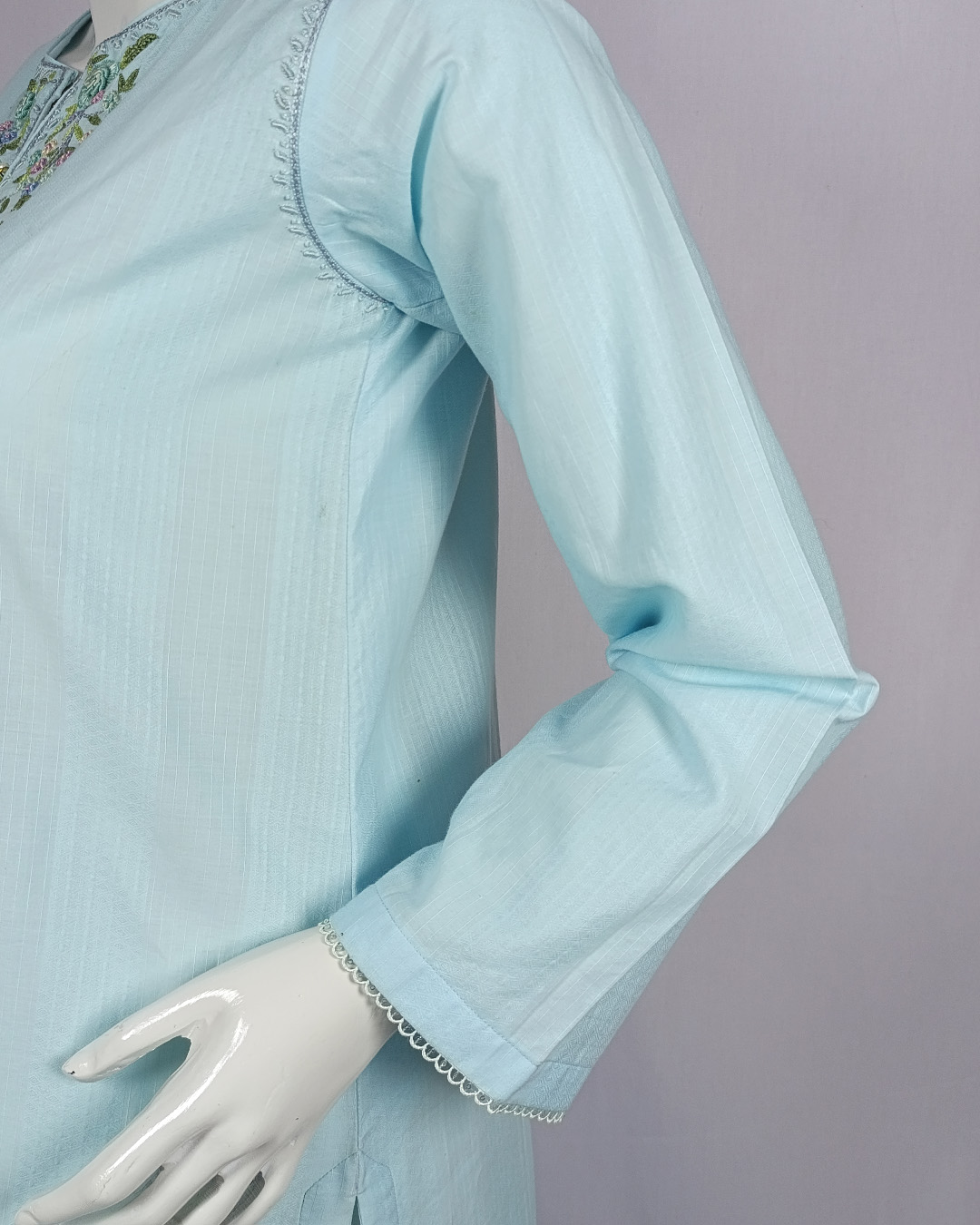 2 PIECES – Hand Embroidered Shirt with Printed Dupatta