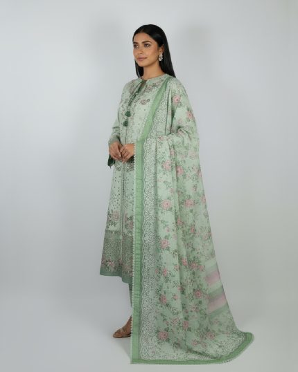 Add a touch of elegance with this 2-piece hand-embroidered set. The Doria lawn shirt features intricate hand embroidery, complemented by delicate lace and organza accents. Paired with a soft cotton trouser, it’s the perfect blend of style and comfort for festive gatherings or special occasions.