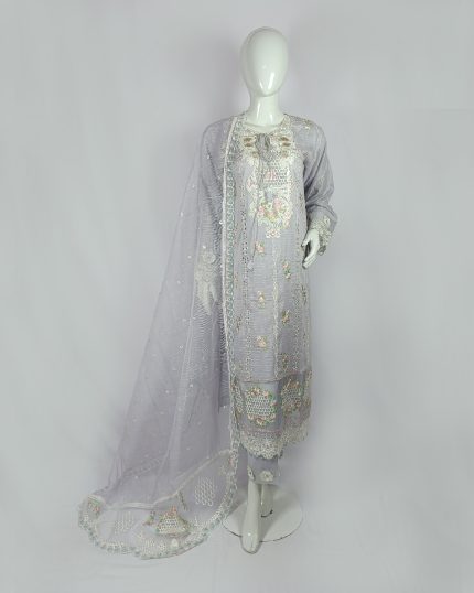✔ Hand-embroidered Doria Lawn Shirt (Lace + Organza Detailing)