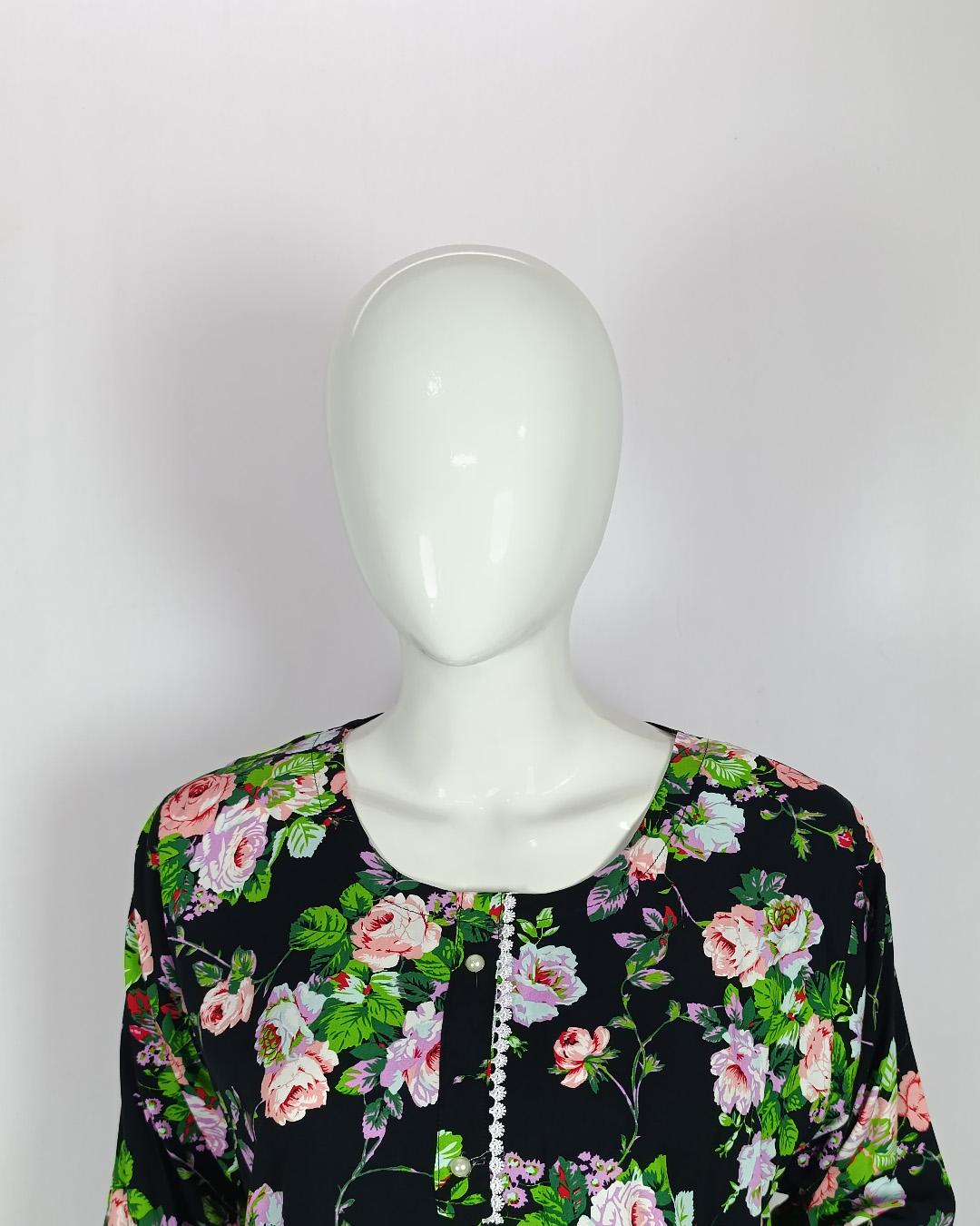 👗 Shirt: Printed malai linen shirt with lace & pearl detailing – chic & elegant