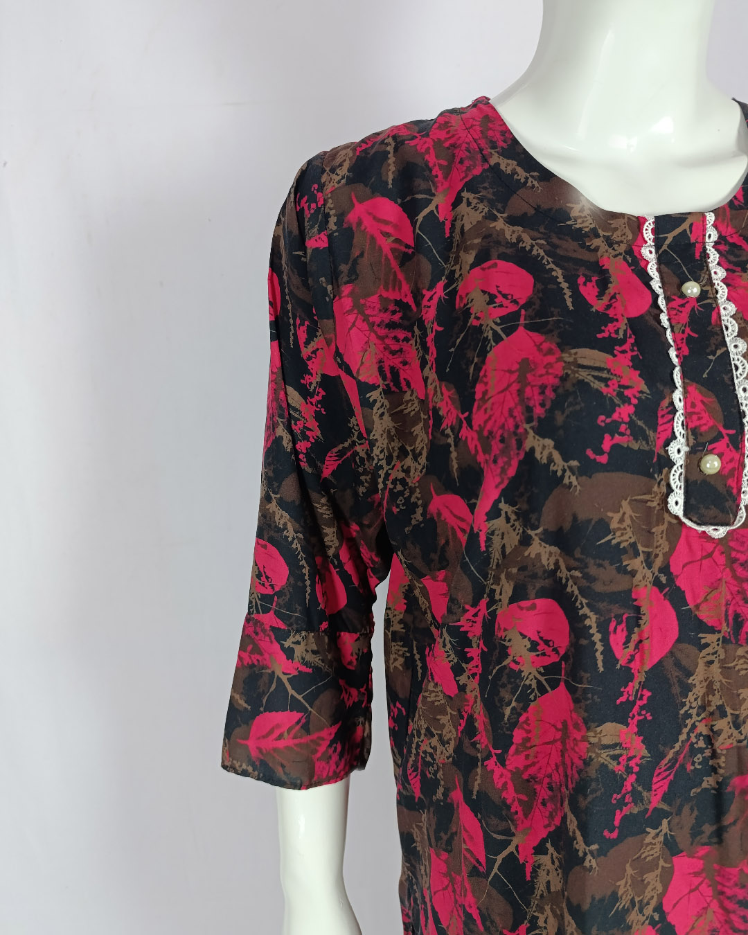 👗 Shirt: Printed malai linen shirt with lace detailing – elegant & comfortable
