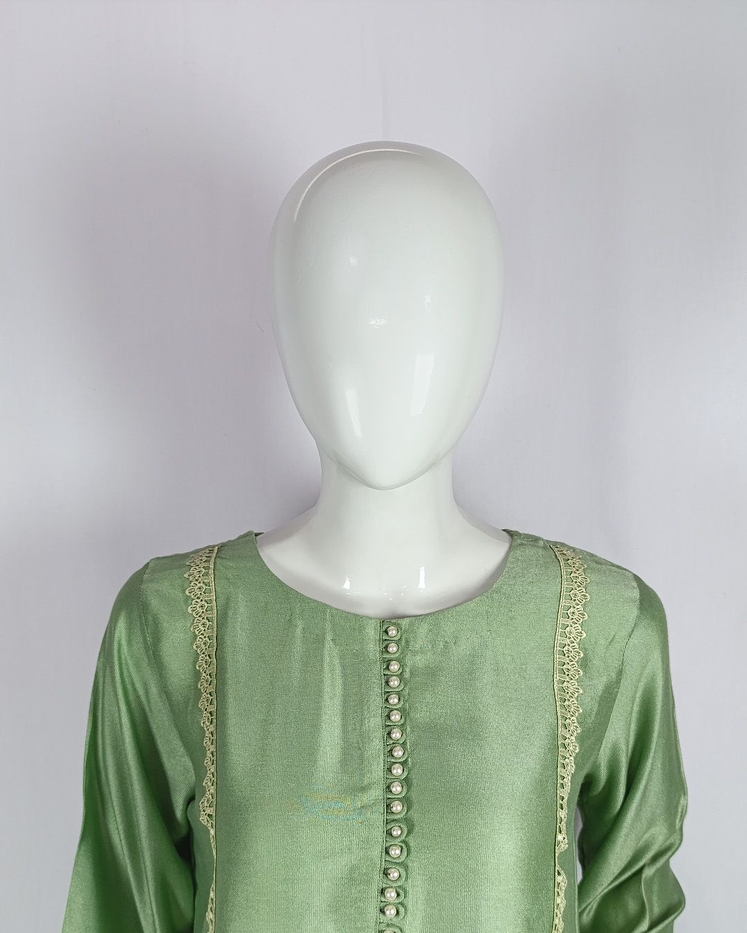 ✔ Machine Cotton Shirt (Lace + Pearl Detailing)