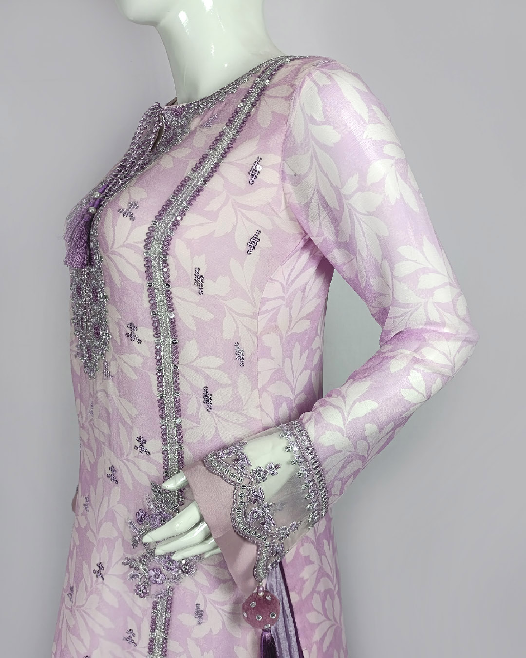 👗 Shirt: Printed chiffon with malai inner – embroidered for a refined look
