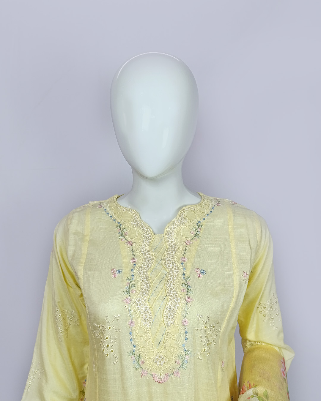 3 PIECES – Embroidered Shirt with trouser & printed dupatta