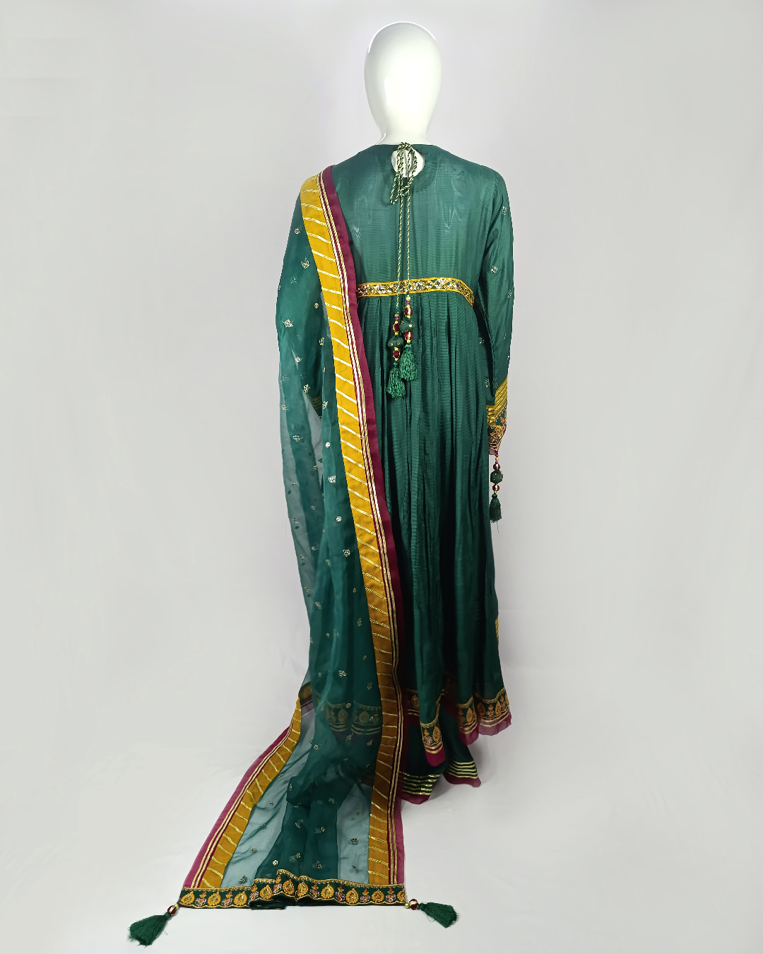 Turn heads this season in our luxury 3-piece green ensemble. The long embroidered malai shirt makes a regal statement, styled with a graceful malai gharara pant, and completed with a finely embroidered organza dupatta. A perfect pick for festive occasions and grand gatherings.