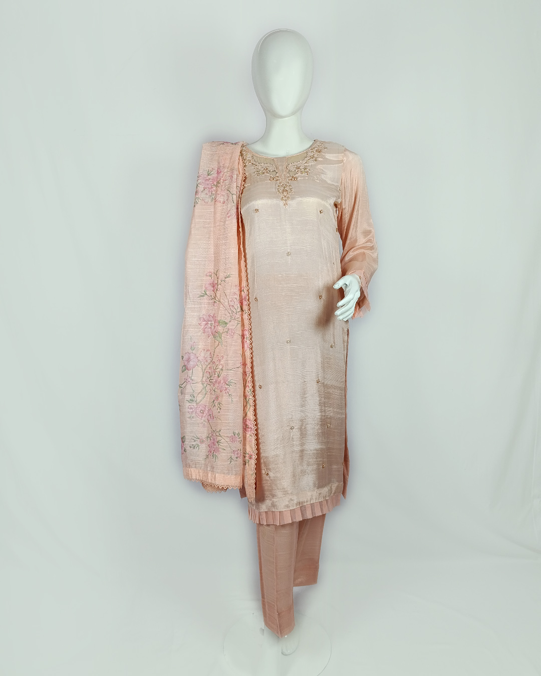 3 PIECES – Hand Emb Shirt with Trouser & Printed Dupatta