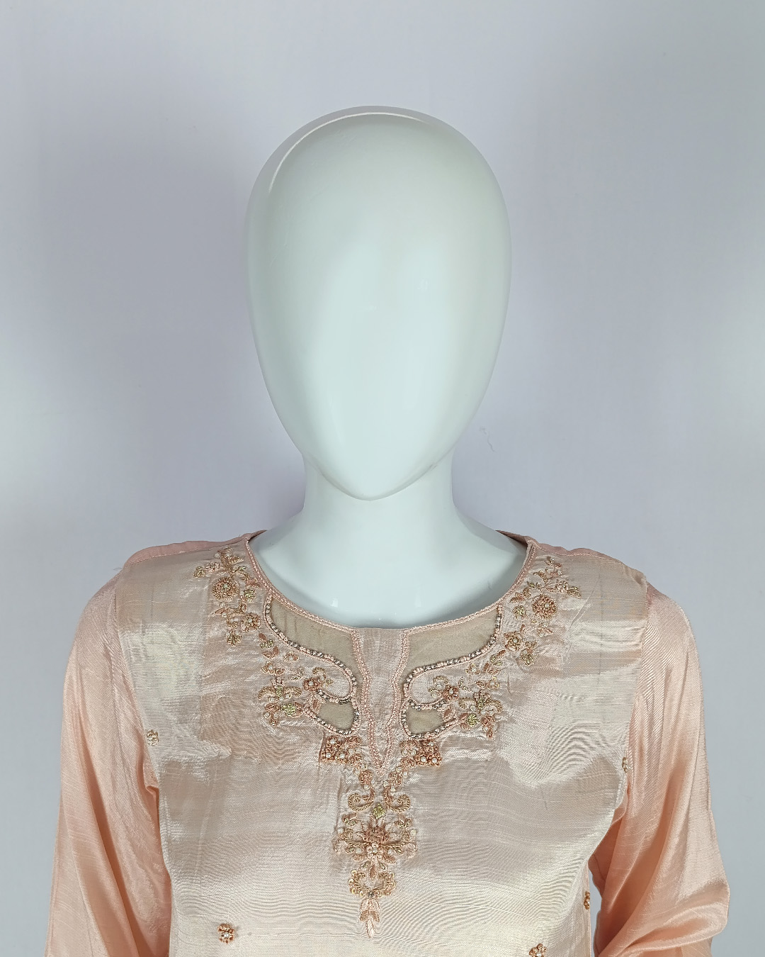 ✔ Hand-embroidered Malai Jorget Shirt (Organza Detailing)