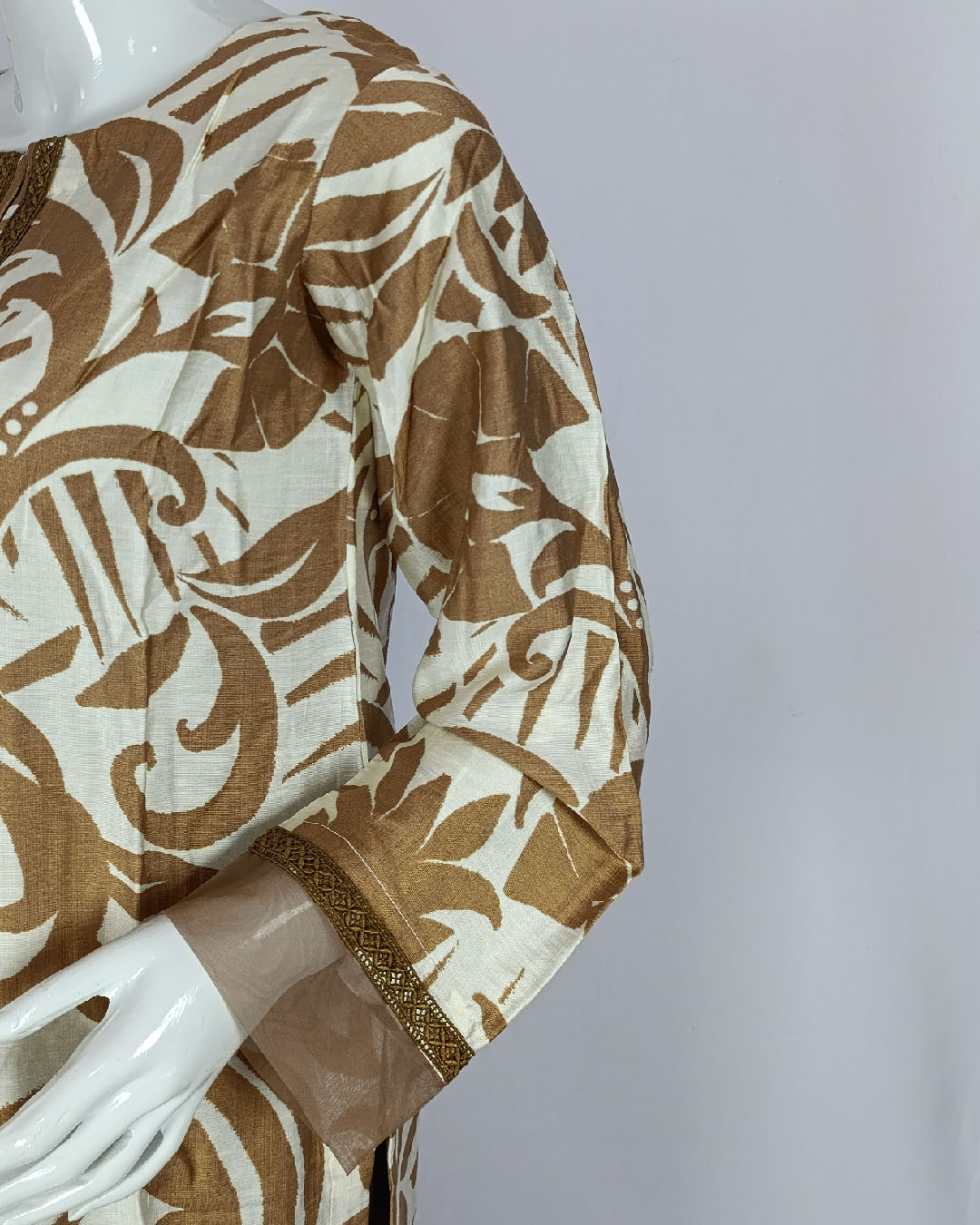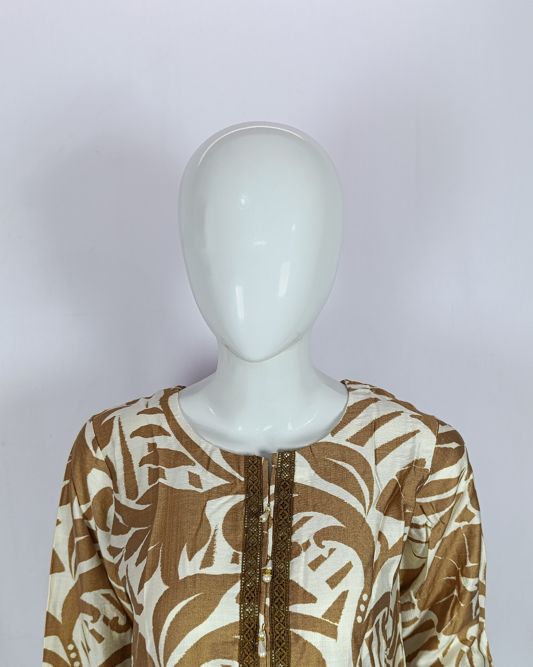 ✔ Printed Khaddar Shirt (Lace + Pearl Detailing)